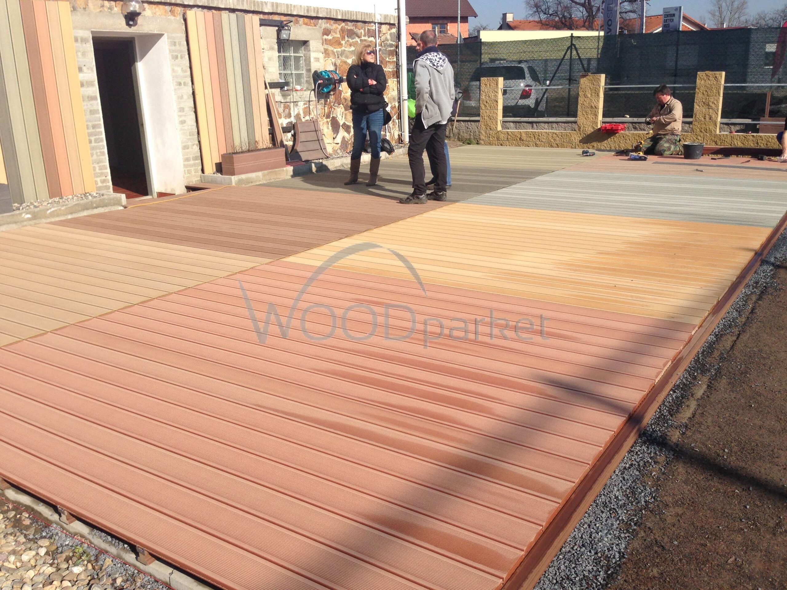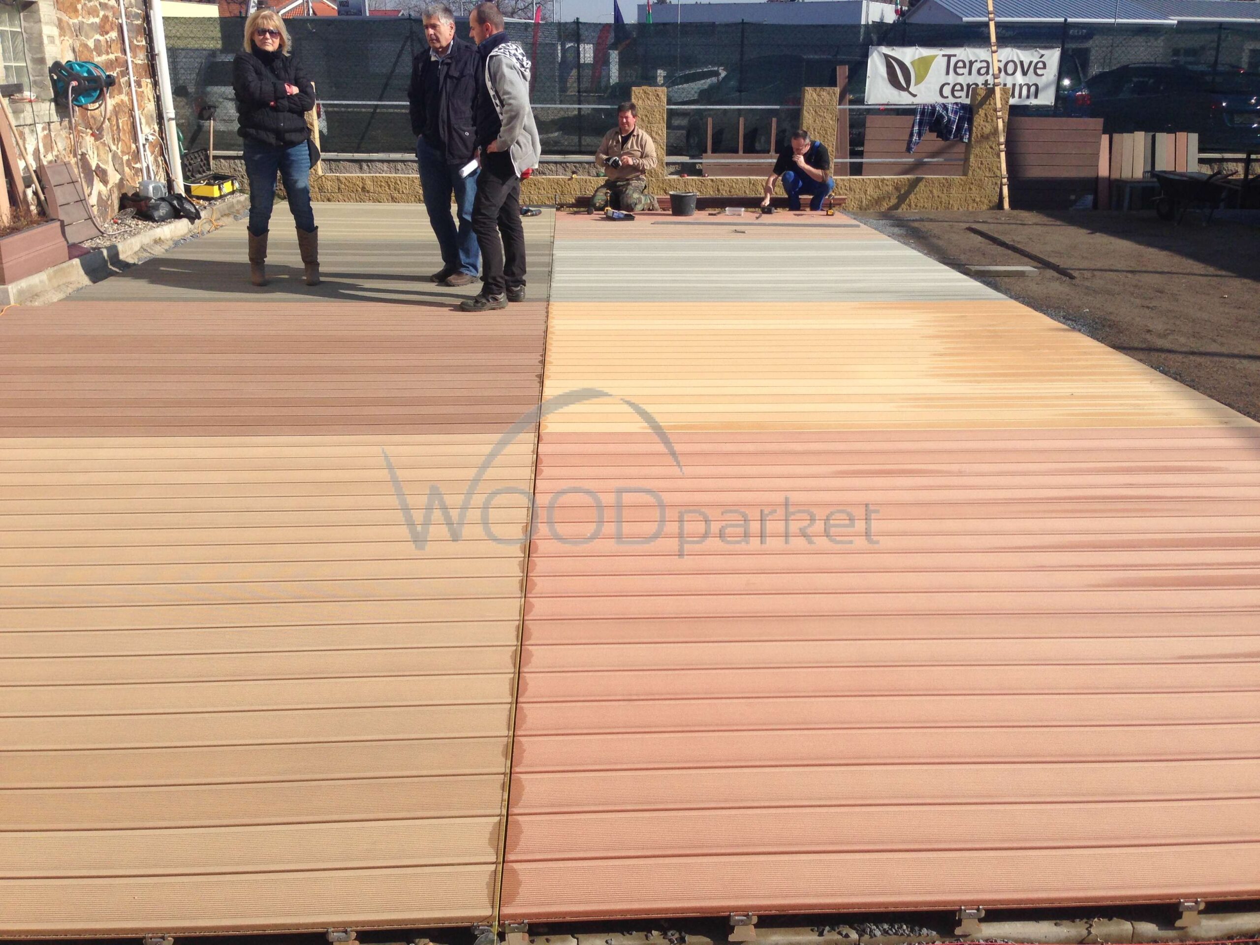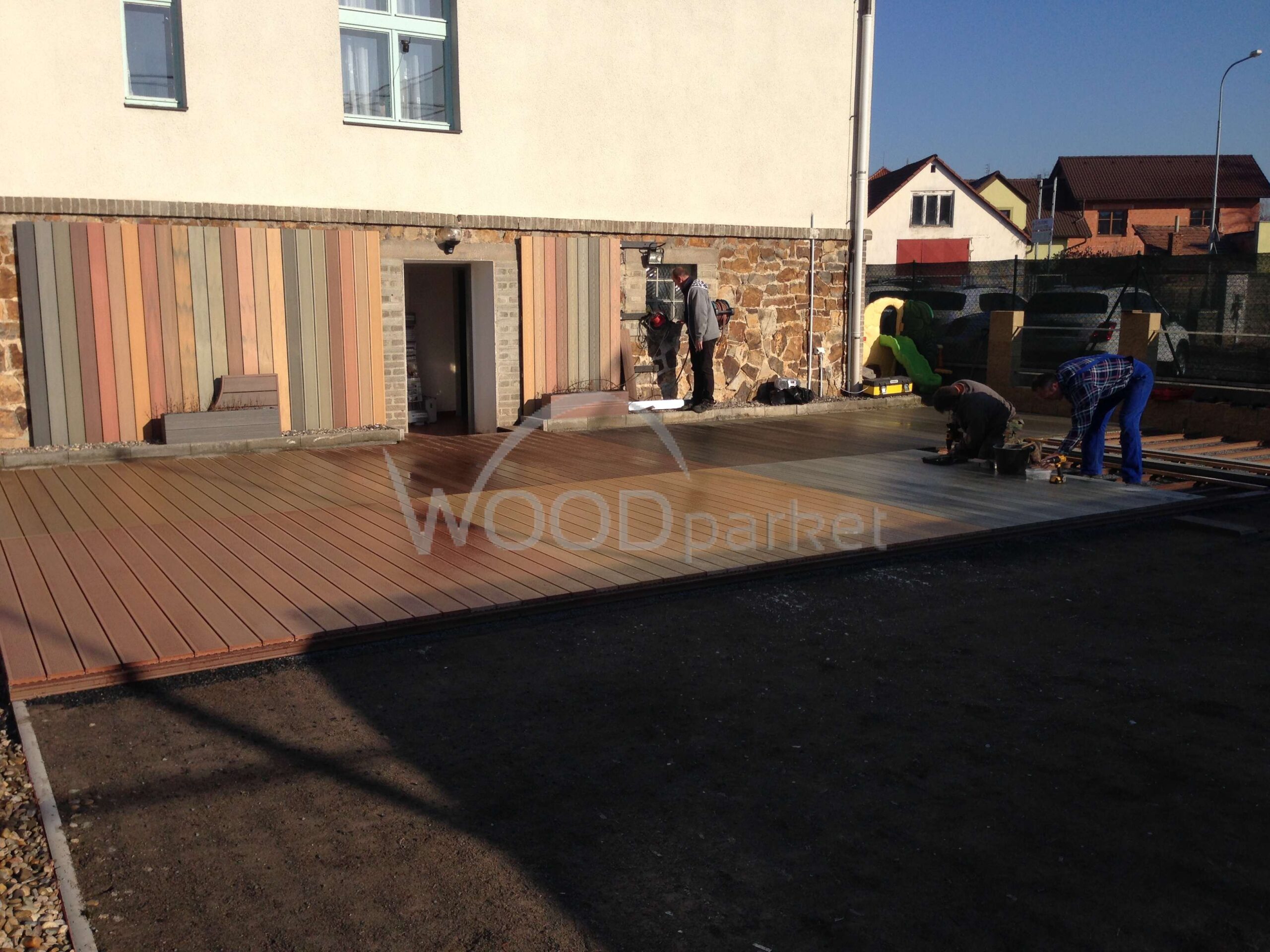 Dnes nám opět počasí přeje a tak můžeme dále pokračovat v pokládce dalších teras. Veškeré terasy si tak budete moci prohlédnout v ploše přes 200 m2 ve venkovních prostorách terasového centra v