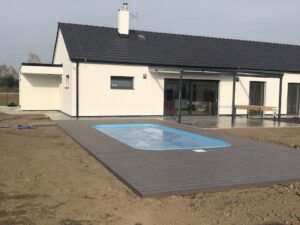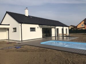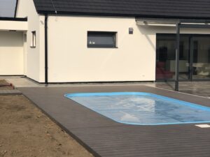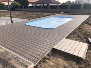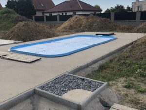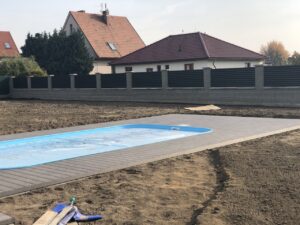 U této zakázky jsme opět vsadili na osvědčený betonový podklad, který je pro okolí bazénu nenahraditelný. Díky tomu je celá plocha stabilní a bezpečně ukotvená.