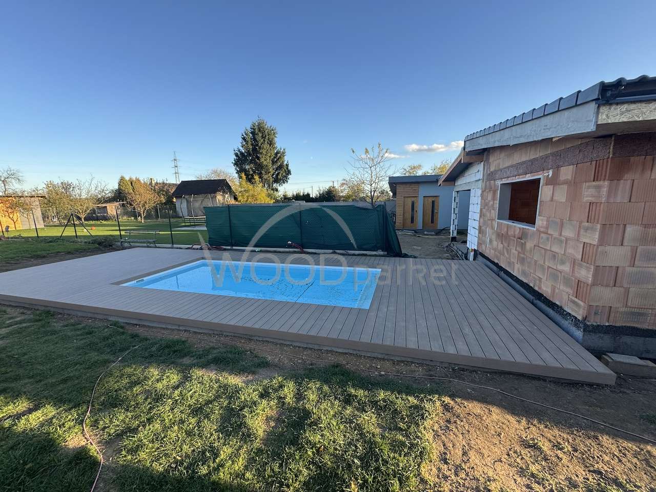 Materiál: WPC prkna Authentic Teak (prémiový vzhled dřeva).