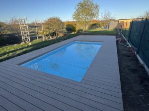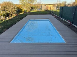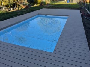 Výsledkem je čistá, precizně vyrovnaná plocha, která zvládne náročný provoz u vody, chlor i přímé slunce bez ztráty barvy nebo tvaru. ️