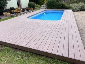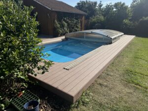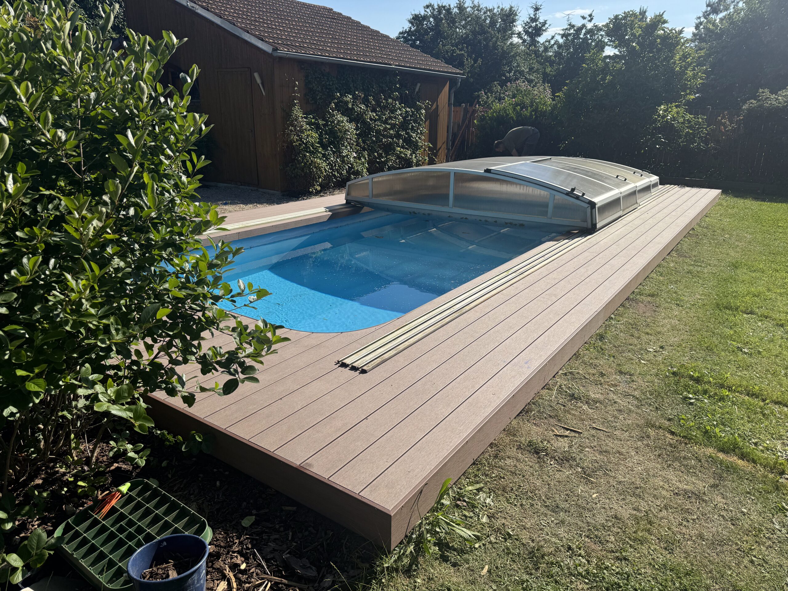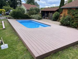 Nová terasa z dřevoplastu přinesla čistý vzhled, dlouhou životnost a minimum starostí. Díky odolnosti vůči vodě, UV záření a bazénové chemii je WPC ideální volbou právě pro prostory u bazénu. Povrch je příjemný na došlap, bezpečný i pro děti a navíc bez nutnosti jakékoli údržby.
