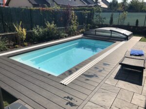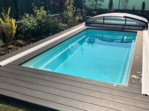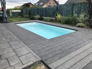Výběr materiálu – autentické dekorační desky ve stylu Eben – zajistil elegantní vzhled, který se hodí jak k bazénu, tak i k okolnímu prostoru. Tento typ terasy je skvělou volbou pro majitele, kteří hledají moderní, nízkonákladové a bezúdržbové řešení pro jejich venkovní prostor.