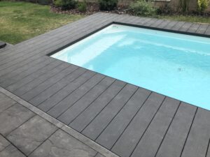 Naše realizace terasy u bazénu, napojené výškově na dlažbu kolem domu, představuje ideální kombinaci estetického vzhledu a praktické funkčnosti. Tento projekt byl navržen tak, aby terasy perfektně ladily s okolním prostředím, přičemž použité materiály z dřevoplastu zajistily dlouhou životnost a odolnost vůči vlivům počasí.